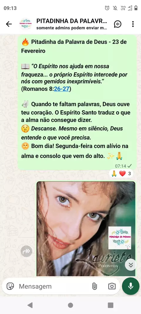 🔥 *Pitadinha da Palavra de Deus - 23 de Fevereiro* 📖 _“O Espírito nos ajuda em nossa fraqueza... o próprio Espírito intercede por nós com gemidos inexprimíveis.”_ *(Romanos 8:26-27)* 🕊️ *Quando te faltam palavras, Deus ouve teu coração. O Espírito Santo traduz o que a alma não consegue dizer.* 🤫 _Descanse. Mesmo em silêncio, Deus entende o que você precisa._ 🌞 *Bom dia! Segunda-feira com alívio na alma e consolo que vem do alto.* ✨🙏 #palavra #pitadinha