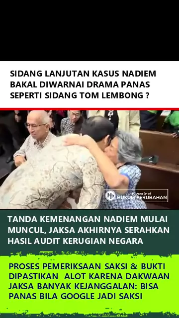 TANDA KEMENANGAN NADIEM MULAI MUNCUL, JAKSA AKHIRNYA SERAHKAN HASIL AUDIT KERUGIAN NEGARA Sidang kasus pengadaan chromebook kembali digelar di Pengadilan tipikor hari ini, 19 Januari 2025. Persidangan ini tampaknya akan berlangsung alot karena kejaksaan ngotot tak mau menyerahkan hasil audit BPKP soal kerugian negara. Menurut Dirtut Jampidsus Kejagung RI Riono Budisantoso, tidak ada aturan yang mewajibkan jaksa penyerahan LHP kepada terdakwa dan penasihat hukum. Sementara kuasa hukum Nadiem Ma...