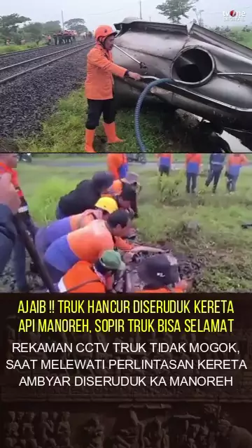 AJAIB ! TRUK HANCUR DISERUDUK KERETA API, SOPIR TRUK SELAMAT