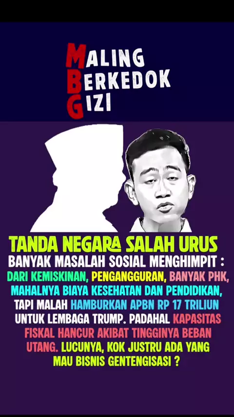 KETUA BEM UGM SEBUT MBG PROYEK MALING BERKEDOK GIZI Komunitas Suara Ibu Indonesia-Yogyakarta menggelar aksi protes bertajuk “Karaoke WNI Mumet” di Bundaran UGM pada Jumat 13 Februari 2026. Salah satu tuntutannya mendesak penghentian kebijakan MBG (Makan Bergizi Gratis). Ketua Badan Eksekutif Mahasiswa Universitas Gadjah Mada, Tiyo Ardianto, ikut hadir berorasi dalam aksi protes bertajuk “Karaoke WNI Mumet” tersebut. Menurutnya, MBG tak layak disebut sebagai Makan Bergizi Gratis, tapi lebih lay...