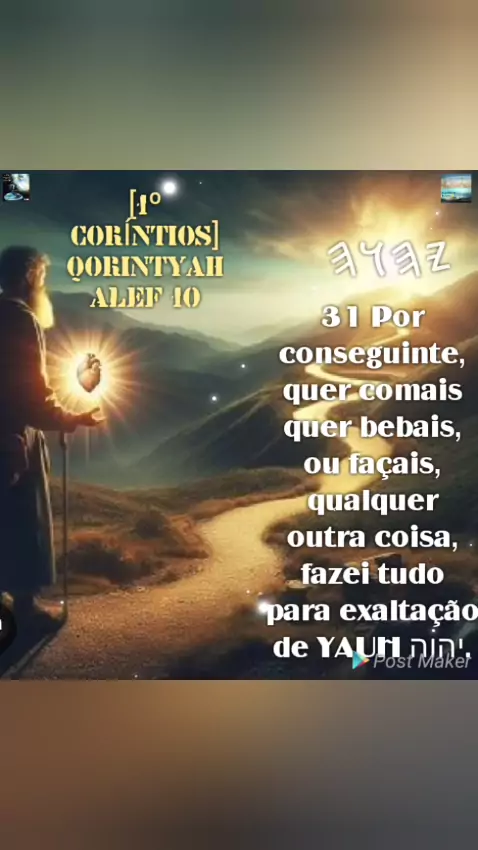 ~[1º CORÍNTIOS] QORINTYAH ALEF 10 31 Por conseguinte, quer comais quer bebais, ou façais, qualquer outra coisa, fazei tudo para exaltação de YAUH יהוה. *FATOS BIBLICOS NO YOU TUBE https://youtube.com/@fatosbiblicostp FATOS BIBLICOS LOUVORES NO YOU TUBE https://youtube.com/@FATOSBIBLICOSLOUVORESBIBLICOSL?si=ojnTa55UKqe0sbgM CANAL FATOS BÍBLICOS LOUVORES ATIVO https://youtube.com/@fatosbiblicoslouvores?si=uw5eMETxz6Gs-Frz GRUPO FATOS BIBLICOS ESTUDOS WATSSAP https://chat.whatsapp.com/JIxB60