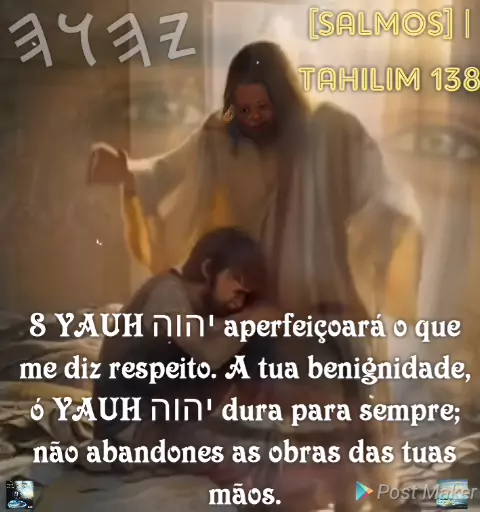 ~[SALMOS] | TAHILIM 138 8 YAUH יהוה aperfeiçoará o que me diz respeito. A tua benignidade, ó YAUH יהוה dura para sempre; não abandones as obras das tuas mãos. *FATOS BIBLICOS NO YOU TUBE https://youtube.com/@fatosbiblicostp FATOS BIBLICOS LOUVORES NO YOU TUBE https://youtube.com/@FATOSBIBLICOSLOUVORESBIBLICOSL?si=ojnTa55UKqe0sbgM CANAL FATOS BÍBLICOS LOUVORES ATIVO https://youtube.com/@fatosbiblicoslouvores?si=uw5eMETxz6Gs-Frz GRUPO FATOS BIBLICOS ESTUDOS WATSSAP https://chat.whatsapp.com