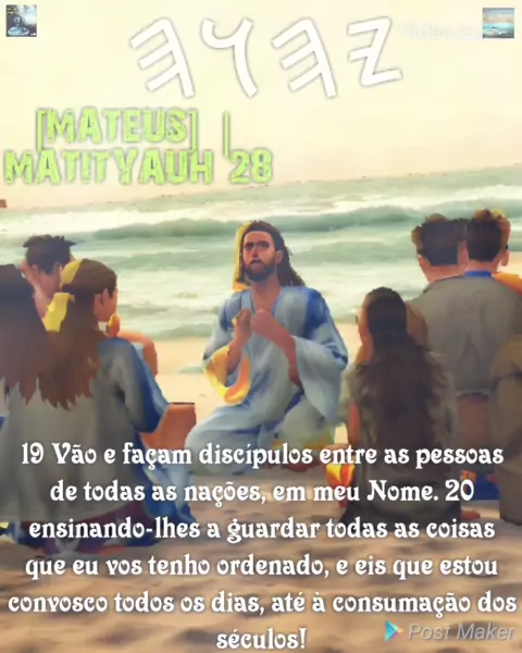 *[MATEUS]  |  MATITYAUH 28 19 Vão e façam discípulos entre as pessoas de todas as nações, em meu Nome. 20 ensinando-lhes a guardar todas as coisas que eu vos tenho ordenado, e eis que estou convosco todos os dias, até à consumação dos séculos! *FATOS BIBLICOS NO YOU TUBE https://youtube.com/@fatosbiblicostp FATOS BIBLICOS LOUVORES NO YOU TUBE https://youtube.com/@FATOSBIBLICOSLOUVORESBIBLICOSL?si=ojnTa55UKqe0sbgM CANAL FATOS BÍBLICOS LOUVORES ATIVO https://youtube.com/@fatosbiblicoslouvores