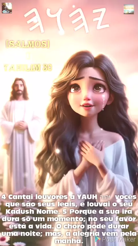 _[SALMOS] | TAHILIM 30 4 Cantai louvores a YAUH יהוה vocês que são seus leais, e louvai o seu Kadush Nome. 5 Porque a sua ira dura só um momento; no seu favor está a vida. O choro pode durar uma noite; mas, a alegria vem pela manhã. *FATOS BIBLICOS NO YOU TUBE https://youtube.com/@fatosbiblicostp FATOS BIBLICOS LOUVORES NO YOU TUBE https://youtube.com/@FATOSBIBLICOSLOUVORESBIBLICOSL?si=ojnTa55UKqe0sbgM CANAL FATOS BÍBLICOS LOUVORES ATIVO https://youtube.com/@fatosbiblicoslouvores?si=uw5eMET