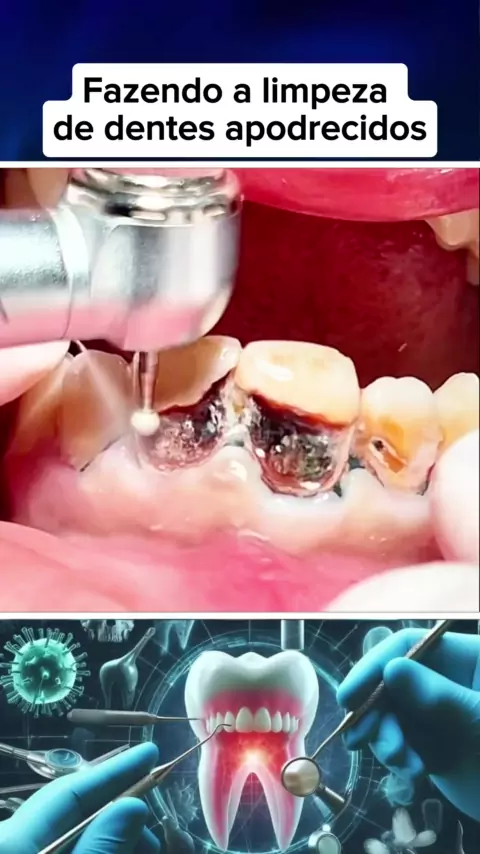 Fazendo a limpeza se dentes apodrecidos