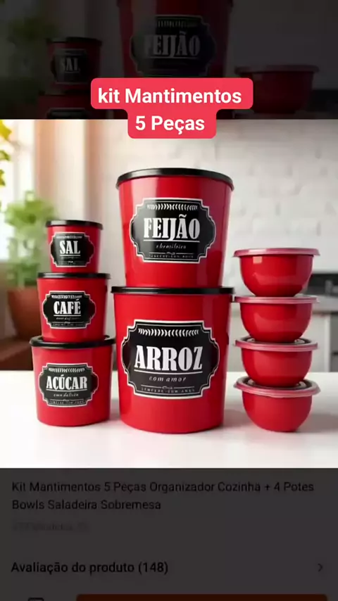 #Kit Mantimentos 5 Peças Organizador #kit #cozinha #organizador