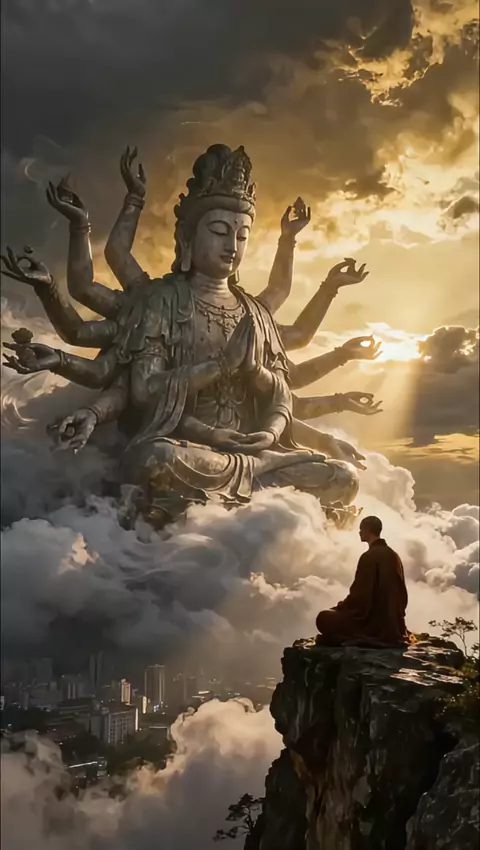 Thousand-Hand Guanyin slowly reveals itself from the surging sea of clouds. #OrientalZenAesthetics #VisualHealingMoment #RecordOfDivineMoments #fyp