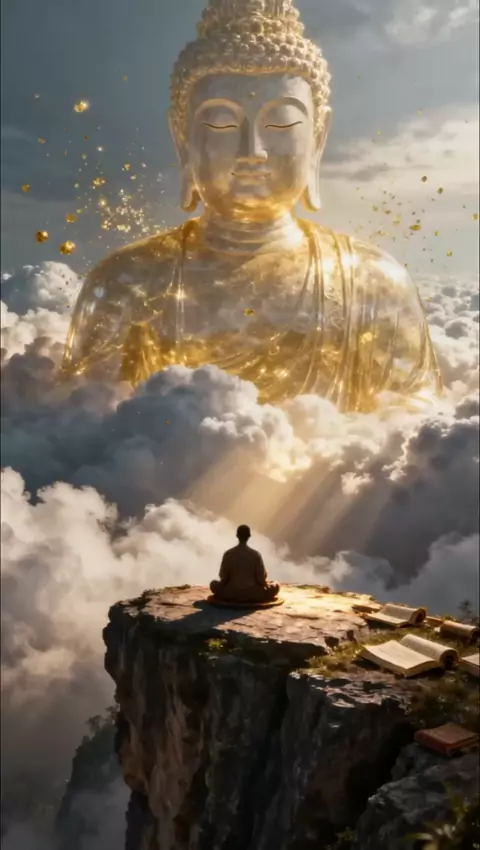 A giant Buddha suddenly appears in the sea of clouds! At the moment of meditating on the cliff, the holy light directly heals all anxiety #fyp