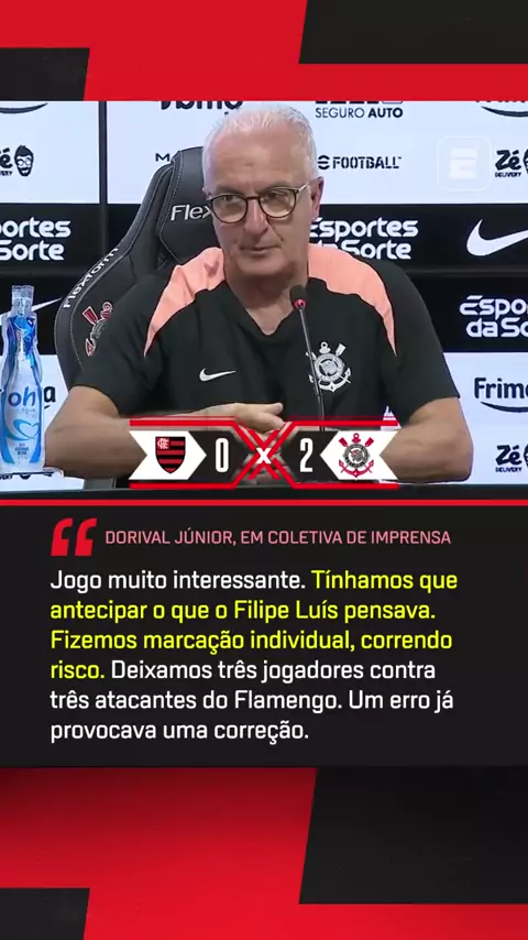 GOSTOU DO JOGO! 🦅 Em entrevista coletiva, Dorival Júnior falou sobre a final da Supercopa Rei contra o Flamengo e revelou que foi ousado ao pensar nas táticas contra o Flamengo, sempre tentando antecipar o que o treinador rival, Filipe Luís pensava. #