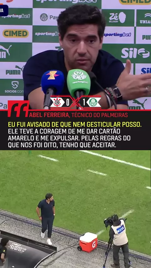 Após a vitória do Palmeiras contra o Corinthians, pelo Paulistão, Abel Ferreira comentou sua expulsão.