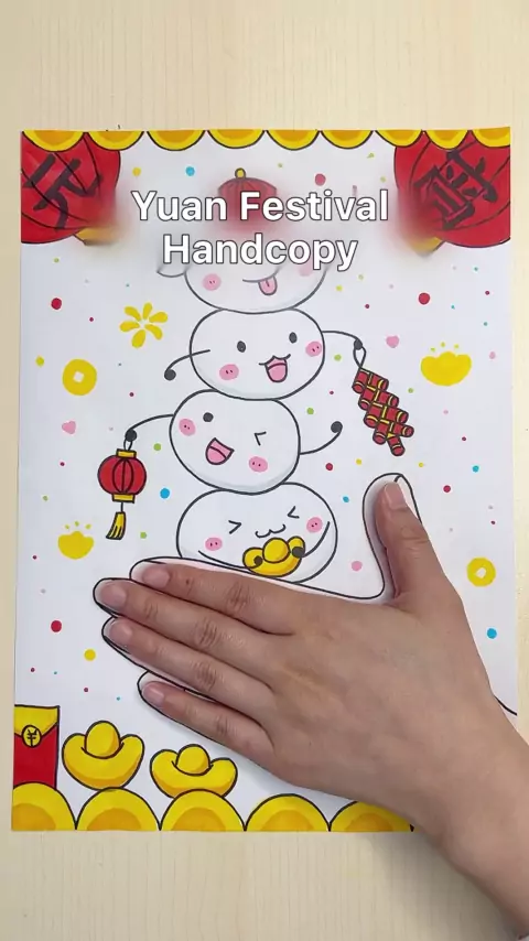Use a palma da mão para desenhar um ultra - simples yuan Festival tema handcopy, lembre-se de coletar!