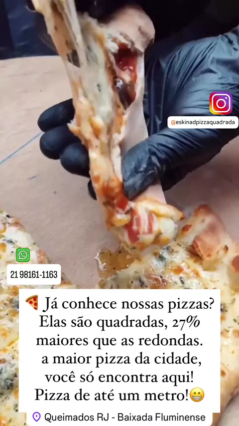 🍕 QUEIMADOS E REGIÃO, ATENÇÃO! 🍕 A ESKINA da pizza quadrada tá bombando! É gente feliz, mesa cheia e a maior pizza quadrada da cidade saindo direto do forno! 🔥🍕 Você não vai ficar de fora, né? 👉 Vem sentir essa vibe gostosa, de festa e sabor, e provar a pizza que todo mundo tá comentando – gigante, suuuuper recheada e com aquele sabor que só a ESKINA tem! 😍 💬 Se a casa tá cheia, é porque é boa de verdade! 🪑 Corre pra garantir sua mesa e não deixa a fome esperar. Aqui, a experiência