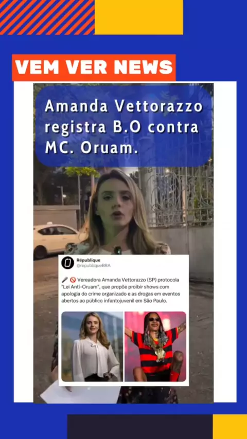 Vereadora registra B.O contra MC. Oruam, após ter sido ameaçada pelos seus fãs em sua rede social. 🚨O que acharam? #sp #rap #amandavettorazzo #mcoruam #noticias