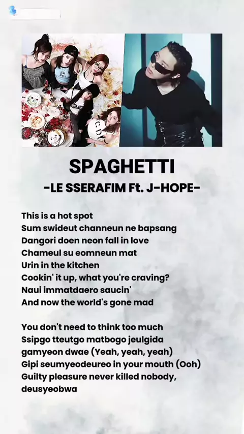 LE SSERAFIM Ft. J-HOPE "SPAGHETTI" Lyrics ๐Ÿ’ฏ๐Ÿ’ฏ๐Ÿ”ฅ #lesserafim #jhope #spaghetti #fearnot #army