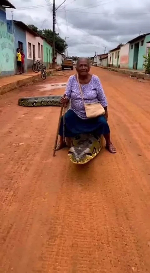 Senhora sentada na cobra.
