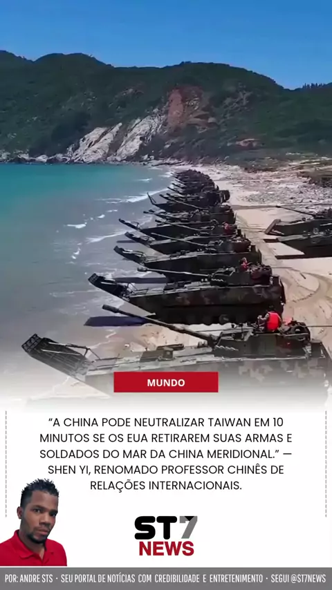 “A China pode neutralizar Taiwan em 10 minutos se os EUA retirarem suas armas e soldados do Mar da China Meridional.” — Shen Yi, renomado professor chinês de relações internacionais. Foto e vídeo: reprodução redes sociais. Equipe: ST7 News #st7news
