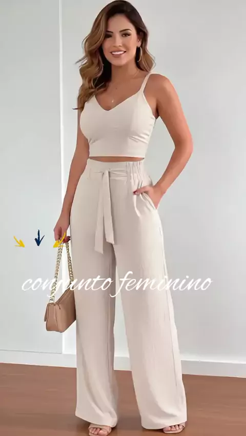 Conjunto feminino cropped calça pantalona moda feminina #modafeminina