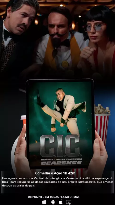 🎬 C.I.C. – Central de Inteligência Cearense (2025) (FILME) Categoria: Comédia / Ação Um agente secreto da Central de Inteligência Cearense se torna a última esperança do Brasil para recuperar dados de um projeto ultrassecreto que ameaça as praias do país. Com muito humor e ação, ele enfrenta perigos e situações inusitadas para salvar o litoral brasileiro. 📌 Duração: 1h 42m