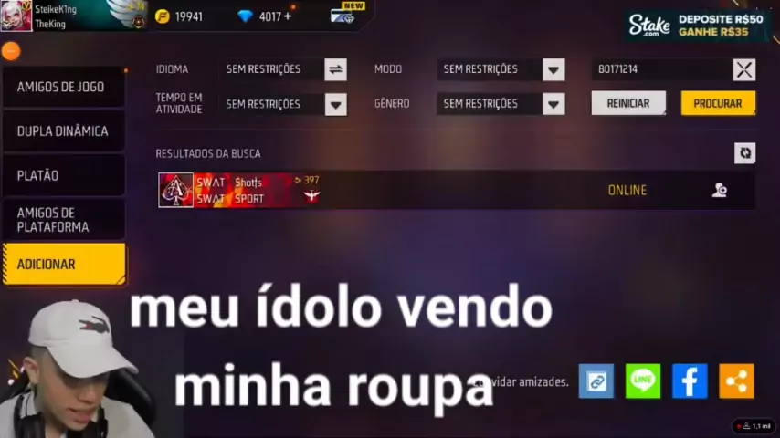 Meu jogador favorito vendo a minha roupa