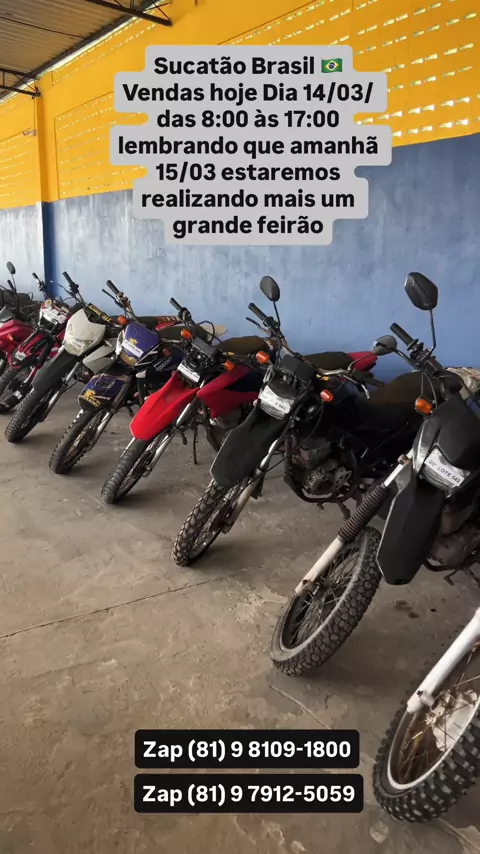 Motos Sucatas,Zap 81 98109-1800,Todas Preços Fixos,Promoção De 50% De Descontos,Apartir De 200,00 Reais,Vendas Seg A Sáb De 8 As 5 Da Tarde,Domingo 8:00 a 12:00,PE-120 Agrestina,Sai Com Notas De Leilão Nome Do Comprador,Aceita Pix,Cartões,Transferência