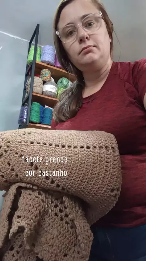 tapete em crochê grande é cor castanho #tapetesluxo #tapetegrande #tapeteemcroche😍 #artesanato #decoraçao
