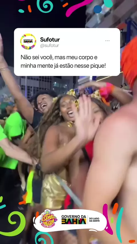 Quando o Carnaval chega, o coração acelera e a alegria toma conta. É liberdade, é euforia, é você no seu melhor estado. É a Bahia!! 🤩 E pra viver tudo isso com cuidado e muita cultura, o @govba está ao seu lado, com equipes de segurança e saúde, além de mais de mil atrações na capital e no interior. Carnaval da Bahia. Um estado de alegria. 🎉 #CarnavalDaBahia #UmEstadoDeAlegria #Sufotur #GovBA