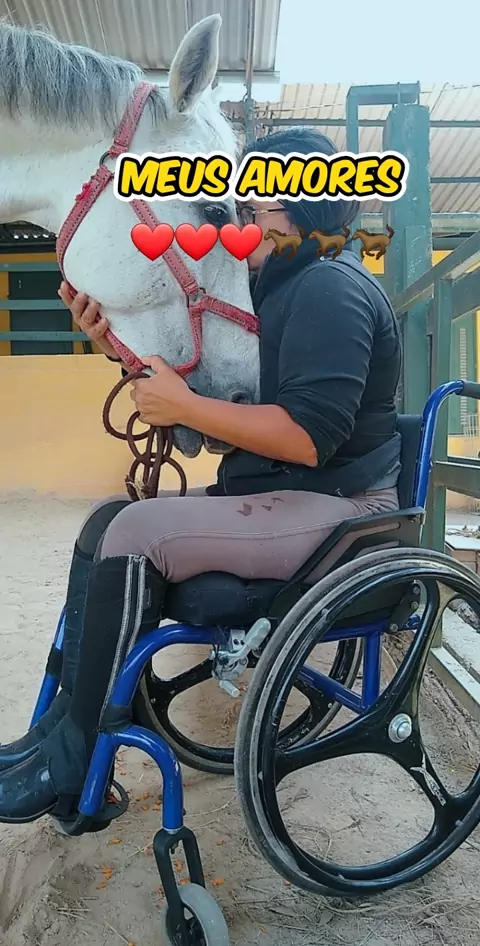 Apesar das deficudades 🧑‍🦽🧑‍🦽🧑‍🦽 imagina uma pessoa alegre ❤️❤️❤️ #viral #superação #kwai #cavalo #sejacriador