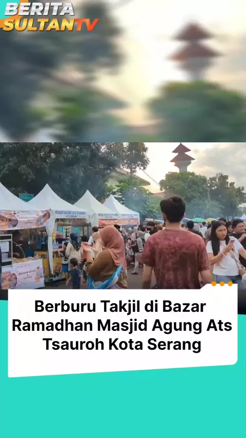 Ratusan warga berdatangan memburu takjil di Bazar Ramadhan Masjid Agung Ats Tsauroh Kota Serang, Minggu, 22 Februari 2026. Sekitar 150 tenan berjajar di sisi halaman masjid. Aneka menu tersaji, mulai dari gorengan, kolak, aneka lauk siap santap, hingga minuman segar. Sejak pukul 16.00 WIB, arus pengunjung mulai meningkat. Menjelang Magrib, kawasan bazar dipadati pembeli yang datang bersama keluarga. (Red/ RG) #ngabuburit #bazarramadan #berburutakjil #masjidagung #atstsauroh