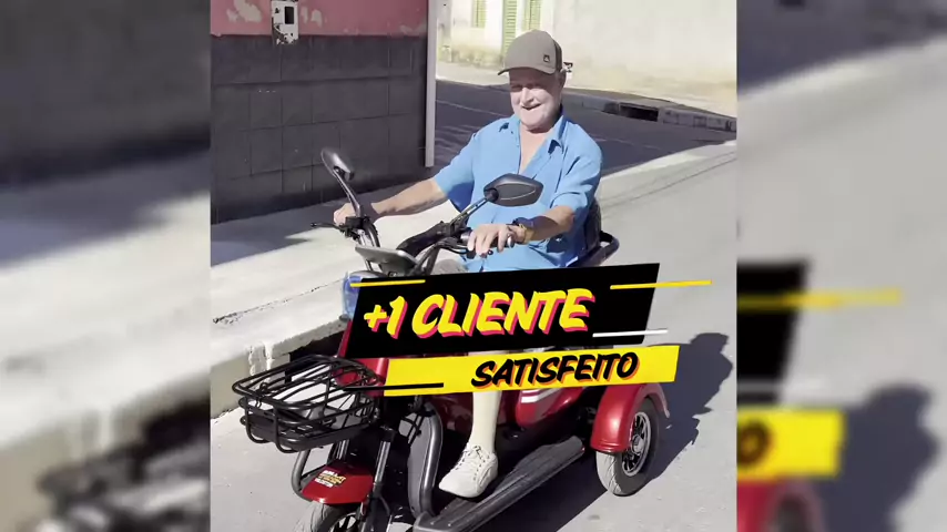 🛵 Cliente satisfeito com seu novo Triciclo Elétrico FÊNIX! Autopropelido | Elétrico | Não exige CNH nem emplacamento 📌 Conforme Resolução Nº 996 do Contran ⚙️ Especificações Técnicas • Potência de 750W • Sistema de marcha à ré • Freio dianteiro hidráulico • Freio traseiro a tambor • Painel digital • Cesta dianteira de aço • Compartimento frontal • Carregador USB • Alarme com bloqueio e trava • Cartão NFC • Suporte para celular • Setas e buzina