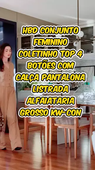 HBD Conjunto Feminino Coletinho Top 4 Botões Com Calça Pantalona Listrada Alfaiataria Grosso KW-CON #EstrelaDeFamília