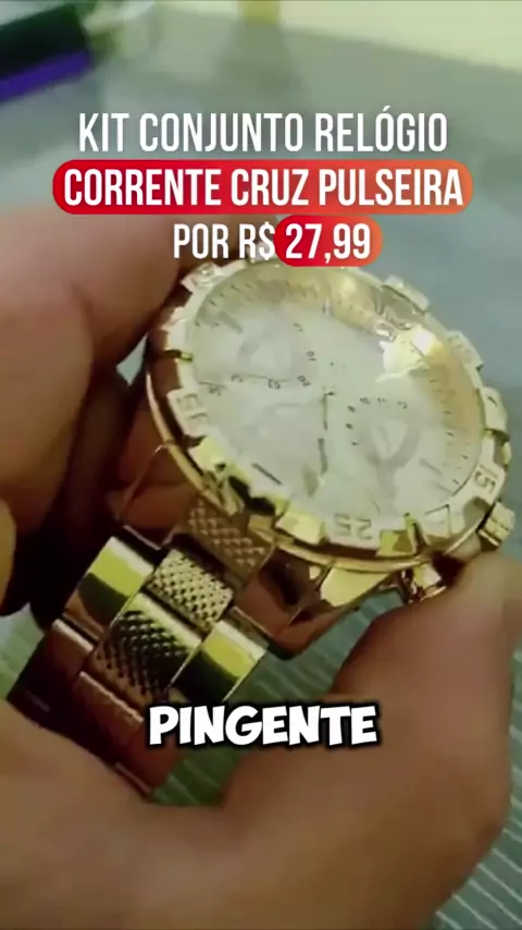 Kit Conjunto Relógio Masculino + Corrente cruz e Pulseira Dourado/Prata/Preto Apenas R$ 29,99 #kwai #kwaishop #relogio