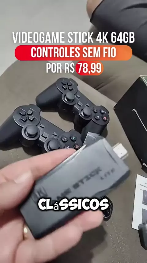 Videogame Stick 4K 64gb 2 Controles Sem Fio Console Portatil Jogos Retro Antigo R$78,99 #maisviews #kwai #kwaishop