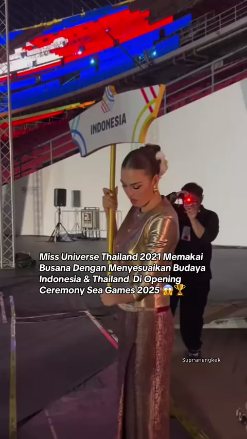 Dalam unggahan terbarunya di IG @annscottkemmis Sebuah kehormatan dan hak istimewa sejati telah melakukan ini. Terima kasih, Indonesia, for the opportunity to hold your country's name and lead the incredible athletes onto the field for the 33rd SEA Games. Kami ingin memberi penghormatan kepada negara Anda yang indah dengan menggabungkan budaya Thailand dan Indonesia bersama-sama, mengenakan potongan-potongan yang mewakili kedua budaya. Terima kasih @joe_surface telah menghidupkan ini, kain vint...