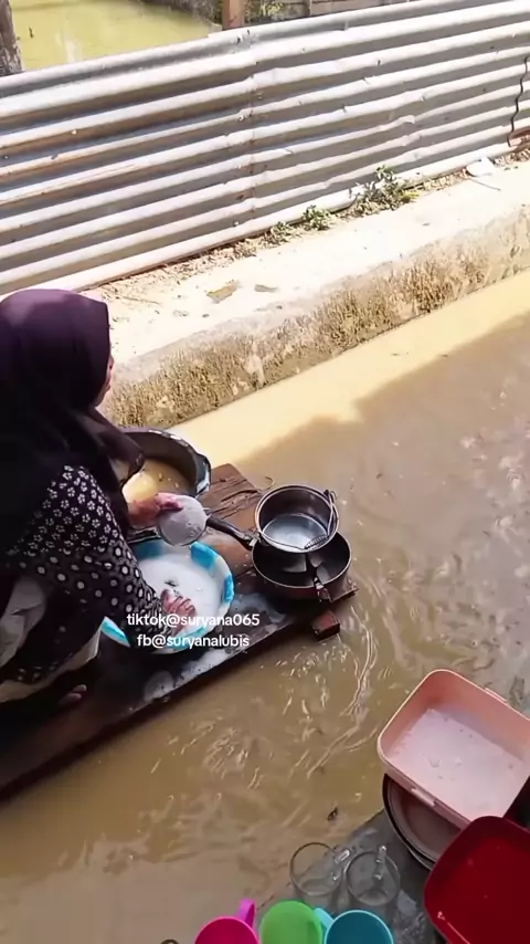 lagi nyuci piring tiba"air naik #kegiataniburumahtangga #sungai #nyucipiring #sungaibelakangrumah #nyuci
