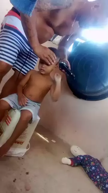 o pai cuidando do cabelo dele