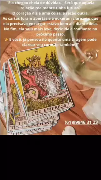 🔮 Tarô & Terapias Holísticas ✨ Amor • Carreira • Autoconhecimento 🌙 Descubra respostas e transforme sua vida . 📲 Agenda aberta!(61)998463123.