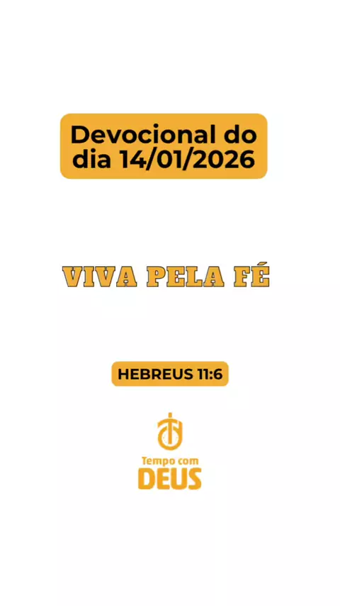 Devocional do dia 14/01/2026 VIVA PELA FÉ Hebreus 11:6 “Sem fé é impossível agradar a Deus, pois quem dele se aproxima precisa crer que ele existe e que recompensa aqueles que o buscam” “Não imponha limites nos seus sonhos. Coloque fé” Curte, comente e compartilhe 🙌🙌🙌🔥🔥🔥🙌🙌🙌 #devocional #tempocomdeus #deus #jesus #sonhos