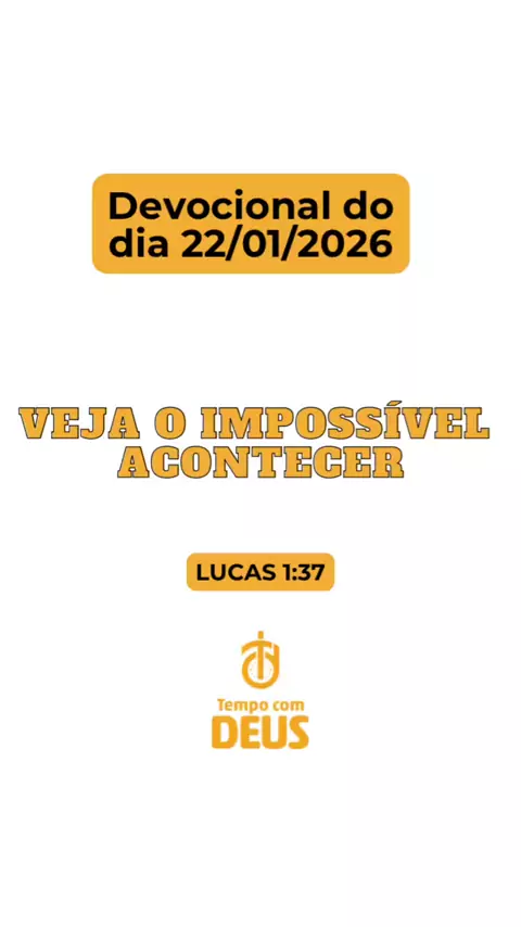 Devocional do dia 22/01/2026 VEJA O IMPOSSÍVEL ACONTECER Lucas 1:37 “Pois nada é impossível para Deus” “Para quem tem fé, o impossível é temporário” Curte, comente e compartilhe 🙌🙌🙌🔥🔥🔥🙌🙌🙌 #devocional #tempocomdeus #deus #jesus #inimaginavel