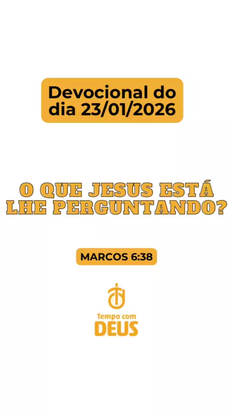 Devocional do dia 23/01/2026 O QUE JESUS ESTÁ LHE PERGUNTANDO? Marcos 6:38 “Perguntou ele: quantos pães vocês tem? Verifiquem. Quando ficaram sabendo disseram. Cinco pães e dois peixes” “O mais importante não é o que me acontece, mas como eu reajo a isso” Curte, comente e compartilhe 🙌🙌🙌🔥🔥🔥🙌🙌🙌 #devocional #tempocomdeus #deus #jesus #aprender
