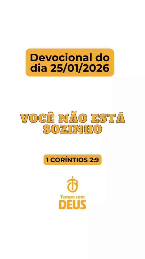 Devocional do dia 25/01/2026 VOCÊ NÃO ESTÁ SOZINHO 1 Coríntios 2:9 “Todavia, como está escrito: Olho nenhum viu, ouvido nenhum ouviu, mente nenhuma imaginou o que Deus preparou para aqueles que o amam” “Não para por causa das circunstâncias. Prossiga, porque Deus está com você” Curte, comente e compartilhe 🙌🙌🙌🔥🔥🔥🙌🙌🙌 #devocional #tempocomdeus #deus #jesus #fidelidade