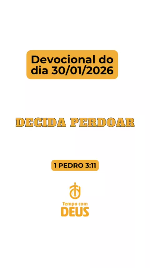 Devocional do dia 30/01/2026 DECIDA PERDOAR 1 Pedro 3:11 “Afaste-se do mal e faça o bem, busque a paz com perseverança” “Comprometa-se a fazer todos os ajustes para que a sua trajetória seja vitoriosa” Curte, comente e compartilhe 🙌🙌🙌🔥🔥🔥🙌🙌🙌 #devocional #tempocomdeus #deus #jesus #perdoar