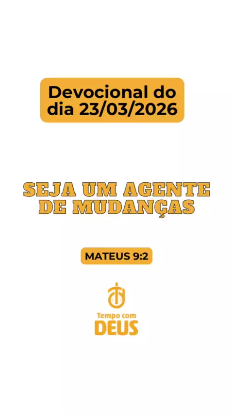 Devocional do dia 23/03/2026 SEJA UM AGENTE DE MUDANÇA Mateus 9:2 “Alguns homens trouxeram-lhe um paralítico, deitado em sua maca. Vendo a fé que eles tinham, Jesus disse ao paralítico: Tenha bom ânimo, filho; os seus pecados estão perdoados” “Para experimentar o plano completo de Deus aprenda a ver com os olhos da fé” Curte, comente e compartilhe 🙌🙌🙌🔥🔥🔥🙌🙌🙌 #devocional #tempocomdeus #deus #jesus #companheirismo