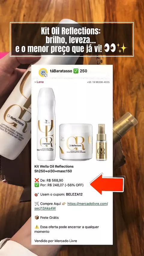 ✨ Unboxing do meu novo queridinho: Oil Reflections da Wella! Brilho, leveza e um preço que é puro achado 💛 Quem ama cuidar dos fios sem gastar muito, precisa ver isso!