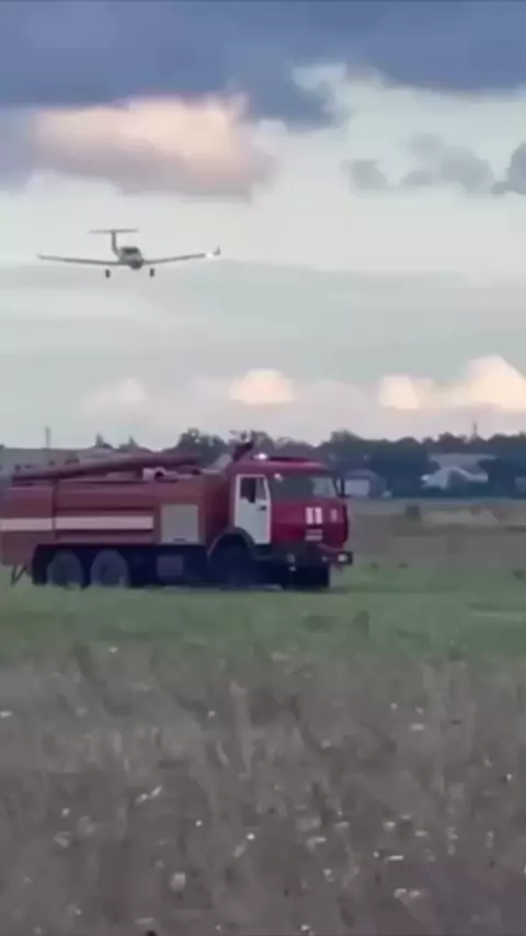 avião pousando com o trem de pouso dianteiro danificado