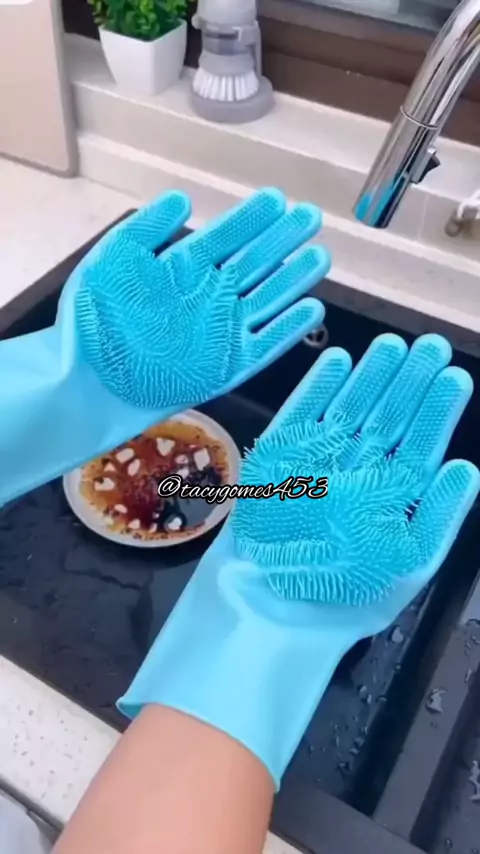 Luva Par Magica Escova Limpeza Silicone Lavar Louça Prato cozinha limpeza 03-004