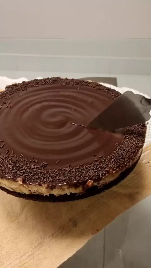 Torta de brownie com mousse de maracujá 💛 Receita: Brownie - 4 ovos 1 1/2 açúcar refinado 200g chocolate meio amargo 3 colheres de sopa de manteiga 1 xícara de farinha 3/4 de chocolate em pó 50% Mousse de maracujá - 1 lata de leite condensado 1 caixa de creme de leite 1 saquinho suco Tang sabor maracujá 1 saquinho de gelatina incolor Ganache de chocolate - 250g chocolate ao leite 100g de creme de leite