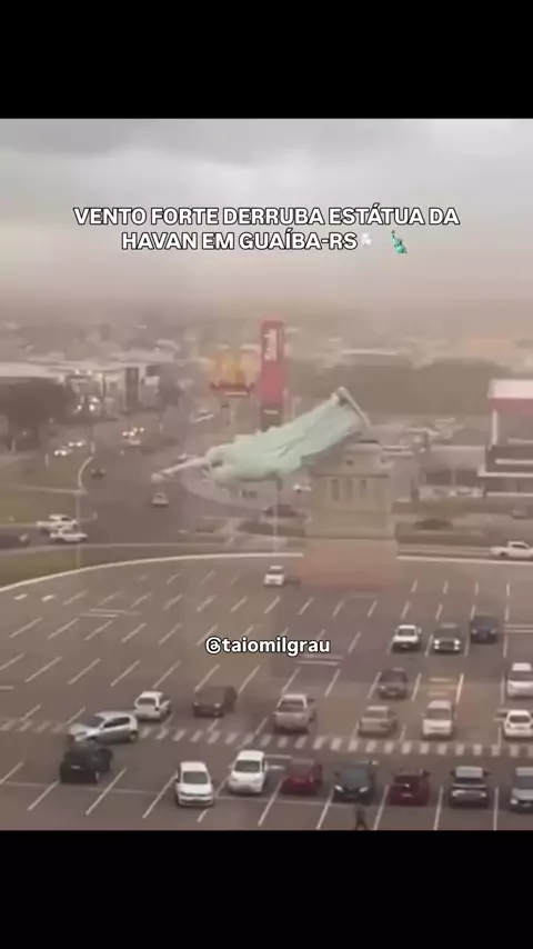 Vento forte derruba estátua da Havan em Guaíba no Rio Grande do Sul. O fato ocorreu nesta tarde de segunda feira (15). Siga @taiomilgrau