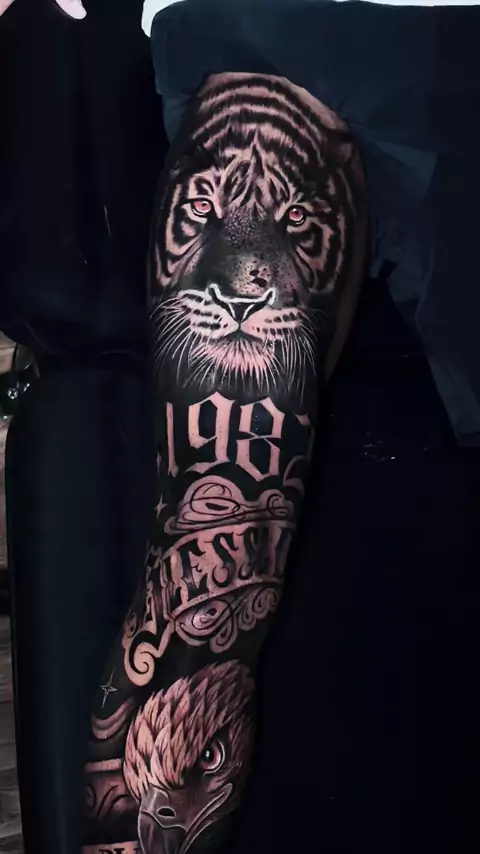 🔥Fiz esse fechamento em apenas 1 sessão 🔥 tem coragem? Vem conhecer meu trabalho #tattoo #INK #tatuagem #tigre #ÁGUIA