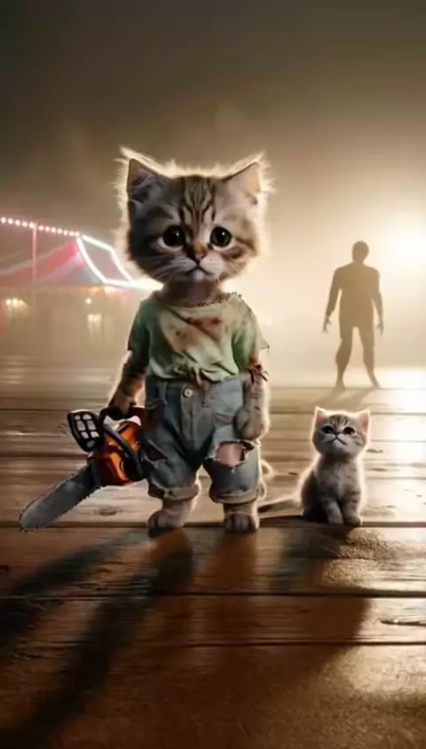Cute kitten at night… zombie nightmare at dawn! 🐱💥! Miau miau miau #miau #catsof #miaumiau🐈 #f #cat