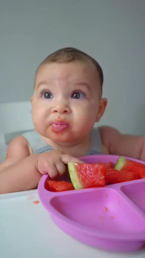 Introdução alimentar de Aurora, provando melancia pela primeira vez, será que ela gostou?